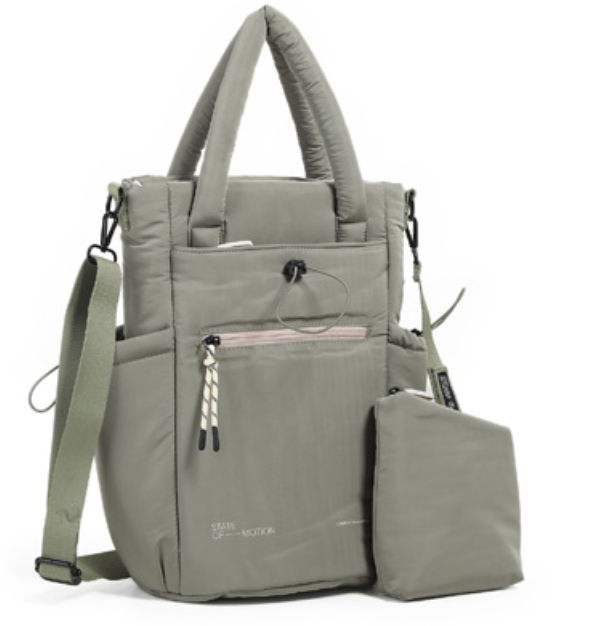 COMPOSICIÓN: BODY: 100% NYLON, LINING: 100% PVC. MEDIDAS: 24*16.5*38CM BOLSO MATERO CON TEXTURA PUFFER. POSEE UN COMPARTIMIENTO PRINCIPAL, UN BOLSILLO FRONTAL EXTERIOR Y UN PORTA YERBA DE TELA.