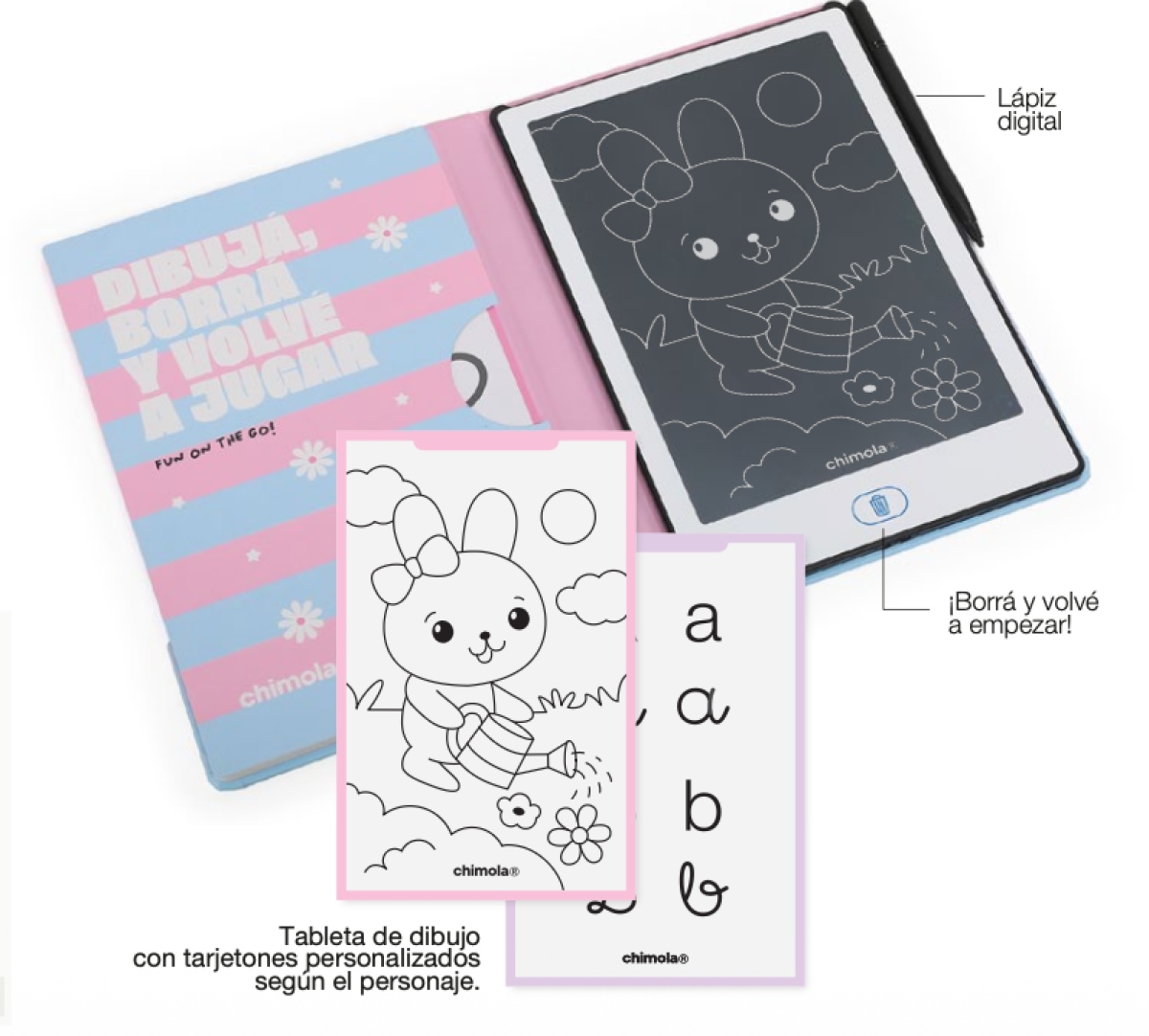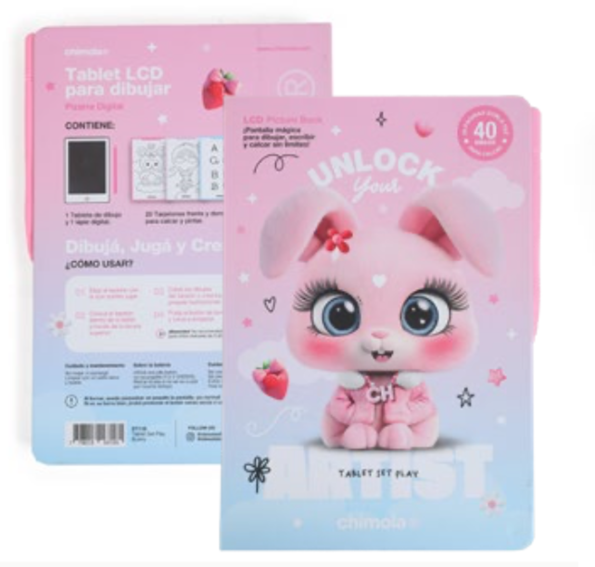 TABLET LCD PARA DIBUJAR MEDIDAS: 22*15.5*1.9CM CONTIENE: - 1 TABLETA DE DIBUJO - 1 LÁPIZ DIGITAL - 20 TARJETONES FRENTE Y DORSO PARA CALCAR Y PINTAR