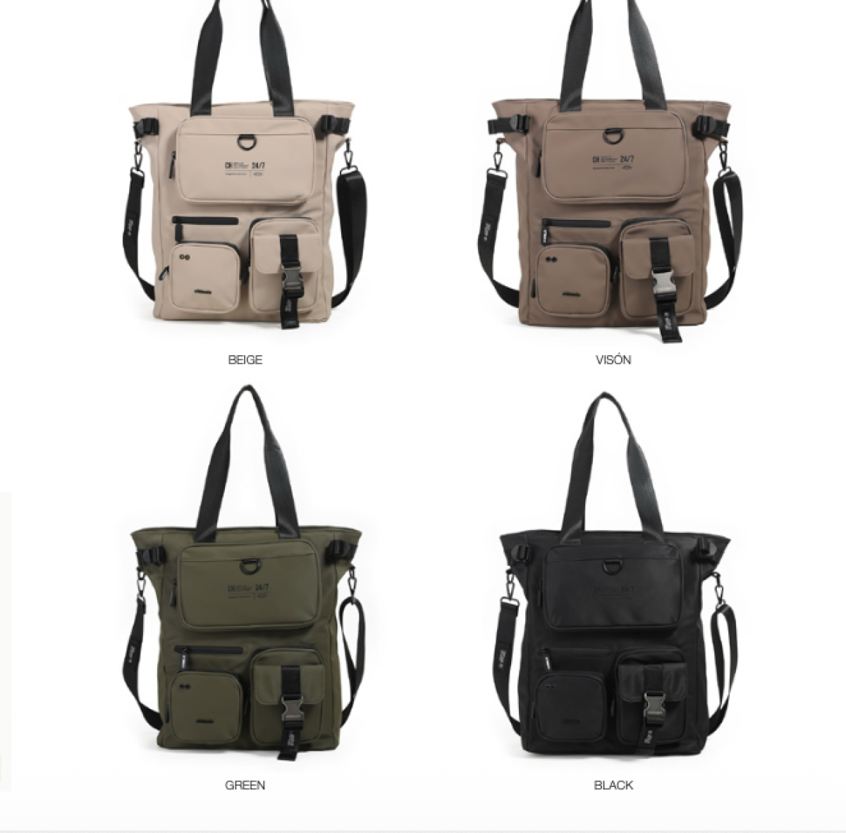 COMPOSICIÓN: BODY: 100% PU, LINING: 80% POLYESTER, 20% COTTON. MEDIDAS: 34*18.5*39CM TOTE TAMAÑO GRANDE. POSEE UN COMPARTIMIENTO PRINCI- PAL Y TRES BOLSILLOS FRONTALES.