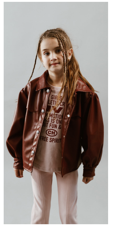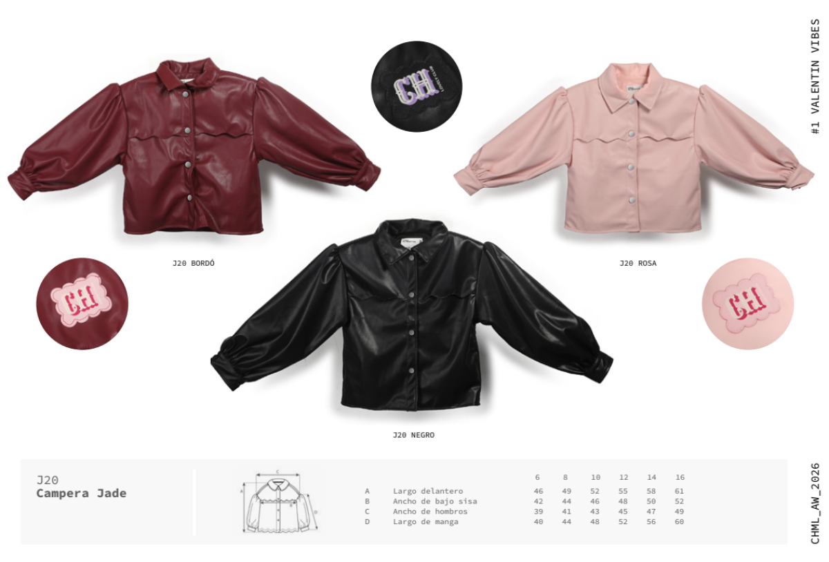 Una campera que eleva cualquier look: símil cuero con un diseño de ondas y mangas bombé que le dan un aire moderno, suave y súper canchero. CARACTERÍSTICAS: Composición: exterior 100% PU, forro 100% poliéster Colores: bordó, rosa y negro Talles del 6 al 16