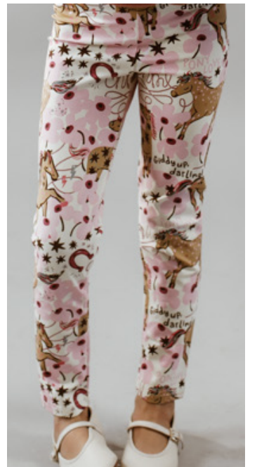 Legging estampado con patrón de caballitos y flores. Tiene bolsillo trasero y cintura elastizada. CARACTERÍSTICAS: Composición: 95% algodón, 5% elastano Colores: rosa, lila y aqua