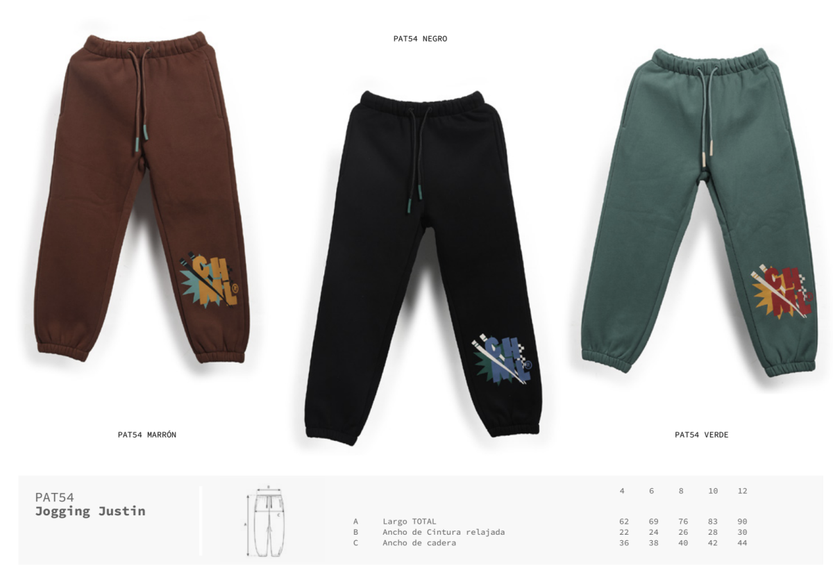 Jogging clásico de frisa, cómodo y abrigado para el invierno, con un toque divertido gracias a su estampa de palitos chinos en la pierna. CARACTERÍSTICAS: Composición: 45% algodón, 55% poliéster Colores: marrón, negro y verde.