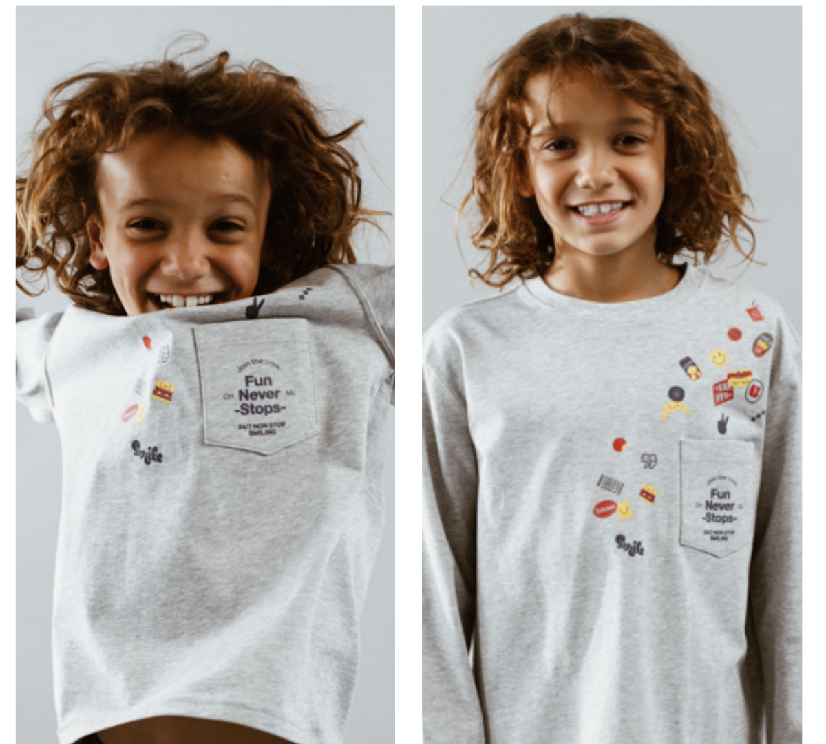 Remera de algodón con bolsillo delantero y mini estampas divertidas en el frente y la espalda. CARACTERÍSTICAS: Composición: 100% algodón Colores: blanco, azul y gris melange Talles del 4 al 14