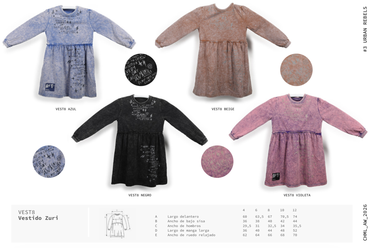 Un vestido cómodo y calentito para el invierno. CARACTERÍSTICAS: Composición: 100% algodón. Etiqueta con lúrex Colores: azul, negro, beige y violeta Talles del 4 al 12