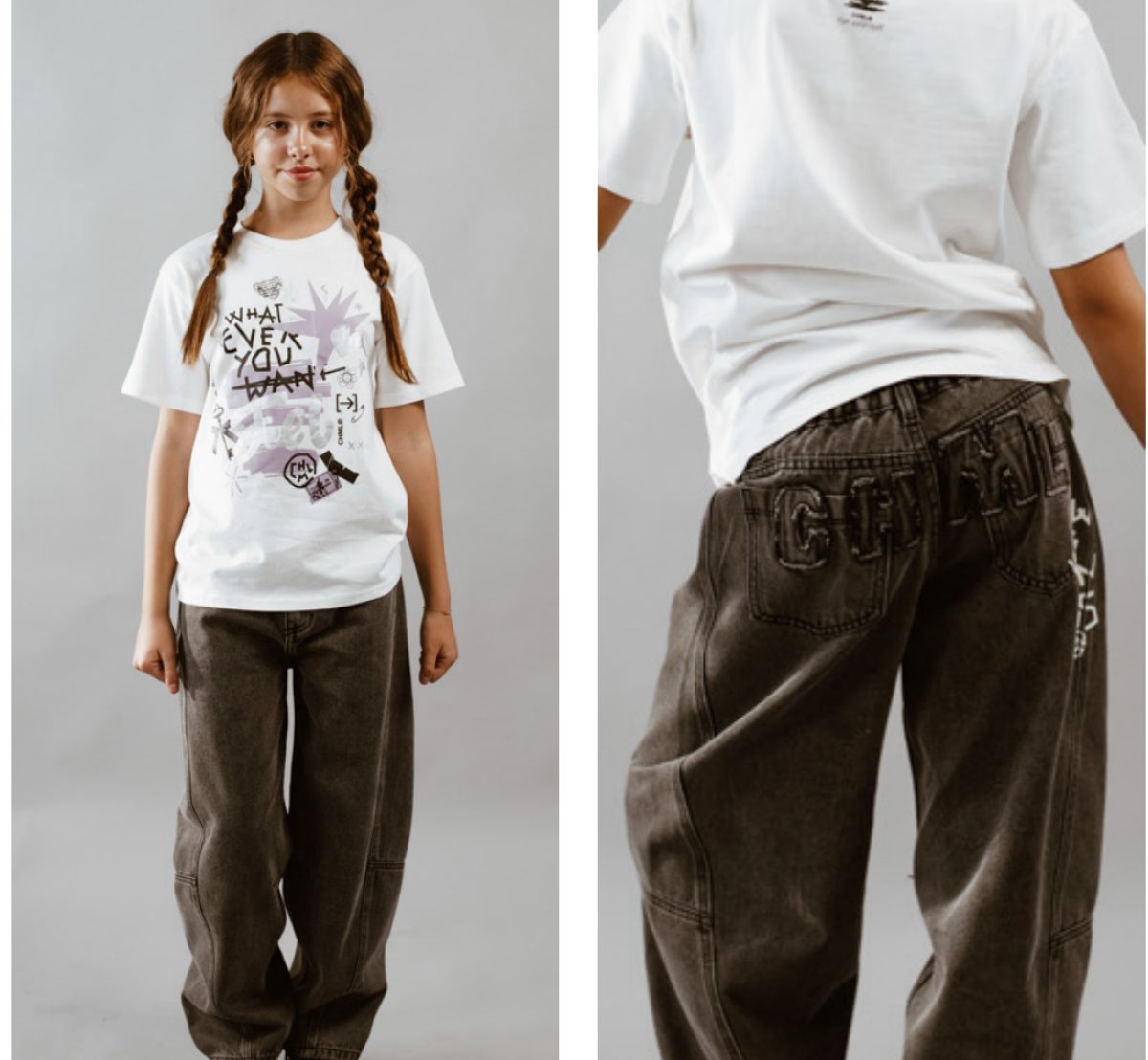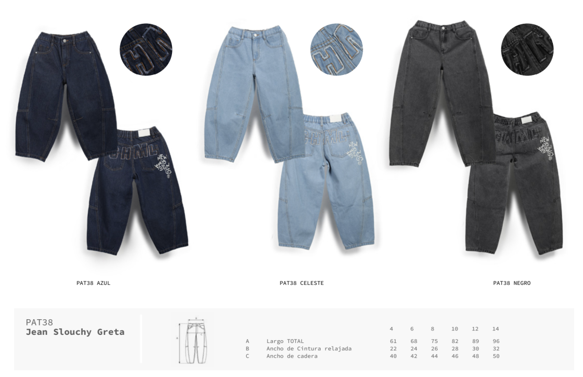 Jean de calce slouchy con recortes delanteros, estampa localizada en la parte trasera y aplique con bordes al corte en el canesú. CARACTERÍSTICAS: Composición: 75% algodón, 25% poliéster Colores: azul, celeste y negro Talles del 4 al 14