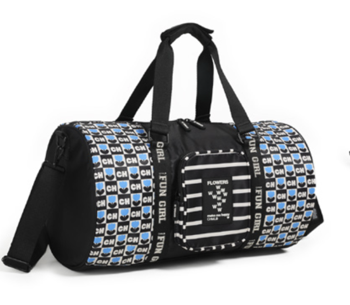 COMPOSICIÓN: BODY:100% NYLON, LINING:80% POLYESTER, 20% COTTON MEDIDAS: 46*17.5*26CM BOLSO DE FORMATO CILINDRO CÁPSULA KIDS. ESTÁ CONFECCIONADO EN NYLON ESTAMPADO. POSEE UN COMPARTIMIENTO PRINCIPAL Y UN BOLSILLO FRONTAL DE CIERRE.
