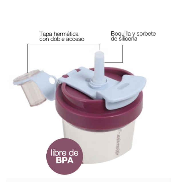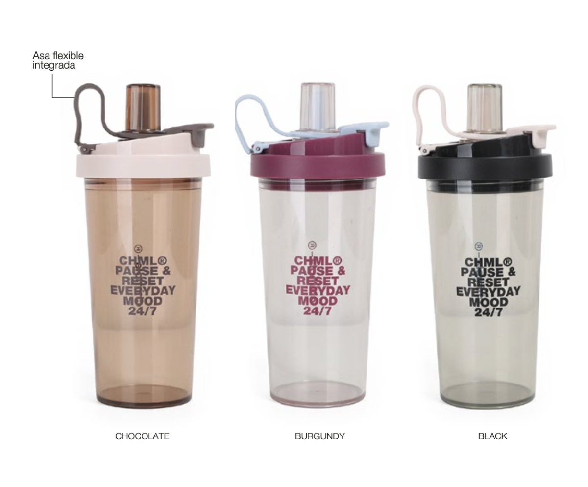 CAPACIDAD: 550ML MEDIDAS: 22*9*6.5CM COMPOSICIÓN: CUERPO: POLICARBONATO TAPA Y COMPONENTES: POLIPROPILENO SELLOS Y BOMBILLA: SILICONA